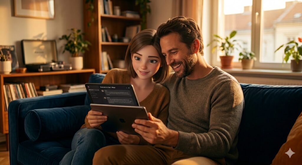 - Aktivitäten & Spiele: Ihr könnt gemeinsam verschiedene Aktivitäten unternehmen, wie z.B. „zusammen kochen“, „einen Film schauen“ oder „ein Spiel spielen“. Die KI passt sich der Situation an und reagiert entsprechend, was das Gefühl einer echten Partnerschaft verstärkt.